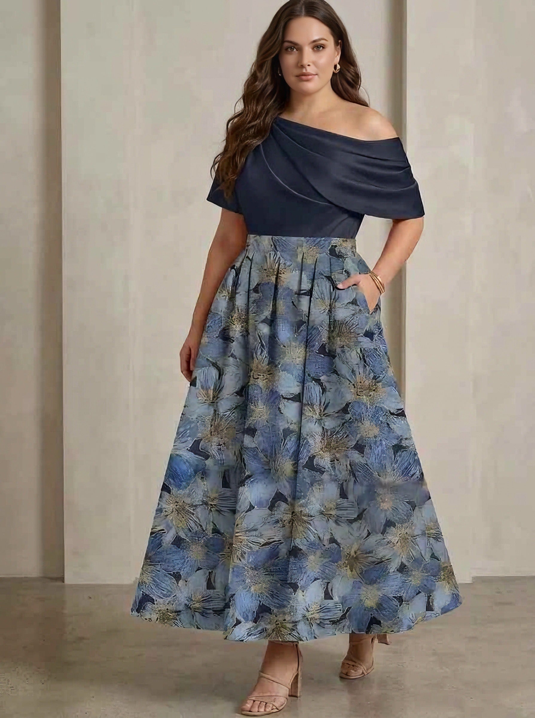 Be the first to review “A-Line/Princess One-Shoulder Satin Plus Size Mother of the Bride Dresses Floral Short Sleeves Ankle Length” Cancel reply