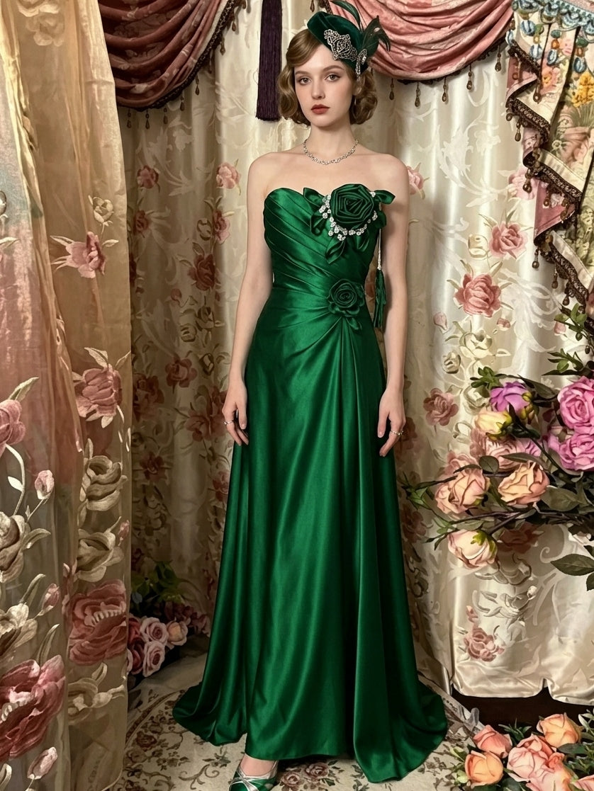A-Line/Princess Strapless Taffeta Prom Dresses Vintage 80s Iridescent Dress Sleeveless Floor-Length 3D Flower
